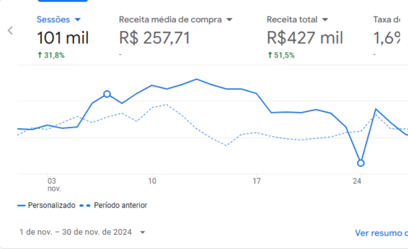 Trabalhamos juntos até hoje e atingimos o faturamento de R$ 206.000,00 faturados em abril de 2024 e R$ 396.000,00 em novembro/24.