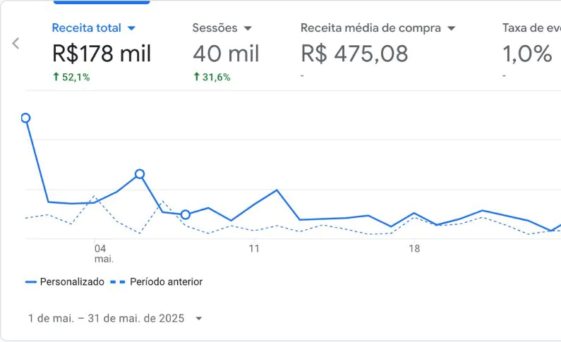 Introduzimos um maior volume de sessões qualificadas, elevamos o ticket médio e a taxa de conversão. Tudo isso com estratégias que unem movimento de mídia paga e orgânica.